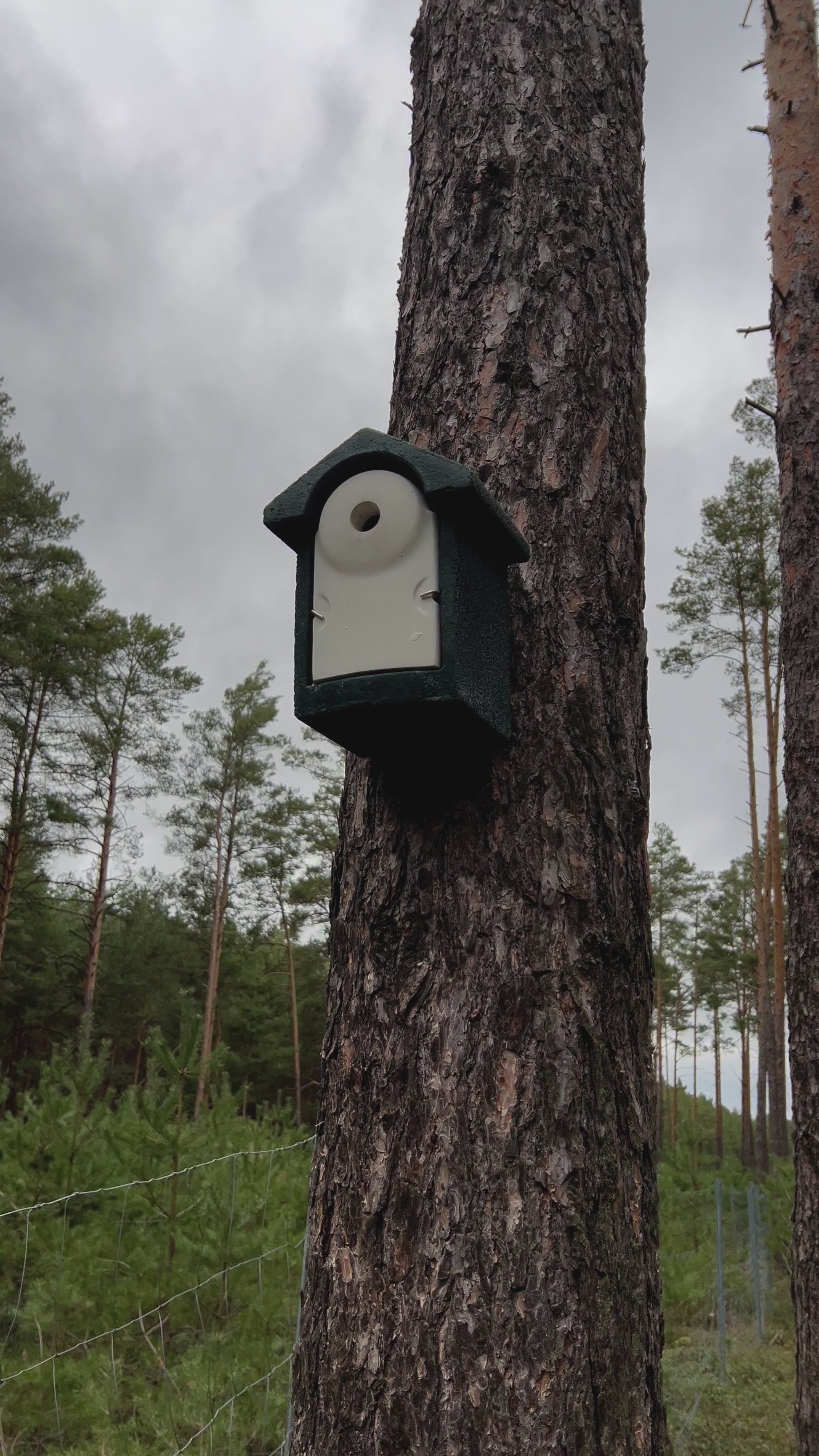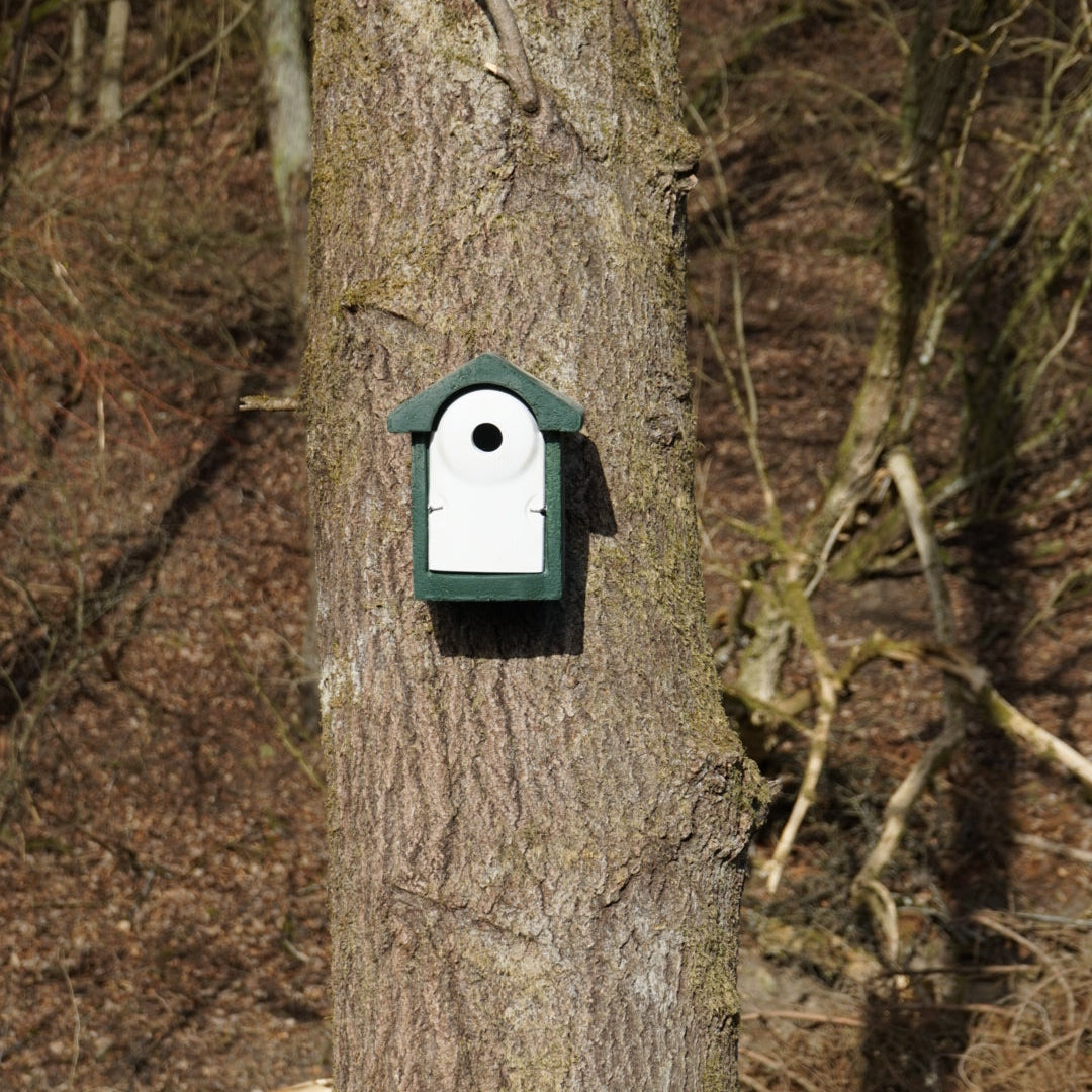 Stabiler Nistkasten aus langlebigem Holzbeton: Dieser bietet idealen Unterschlupf für verschiedene Singvogelarten wie Blaumeisen, Tannenmeisen, Trauerschnäpper, Kohlmeisen, Haubenmeisen, Haussperlinge, Feldsperlinge, Kleiber sowie Rotschwänzchen. Er ist mit einem Marderschutz ausgestattet, um die Vögel vor unerwünschten Eindringlingen zu schützen. Der Nistkasten wird nicht geliefert, sondern fachgerecht auf unseren Aufforstungsflächen aufgehängt.